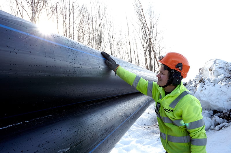 ”Detta är ett samverkansprojekt mellan Skellefteå Kommun, NCC och Ramböll där vi gemensamt arbetar med Extena som leverantör av rör till hela projektet”, säger Jonas Stenberg, projektansvarig på NCC. ”Extena rekommenderade att vi skulle välja PE100 RC-rör och efter att vi hade gjort egna grundliga efterforskningar beslutade vi att gå på Extenas förslag.”